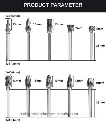 | 제품 이름 | 10pcs 1/8 "Shank Dia 3 × 6 mm 포팅 전력 도구 알루마 절단 텅스텐 탄화물 회전 절단기 파일 탄화물 버 |